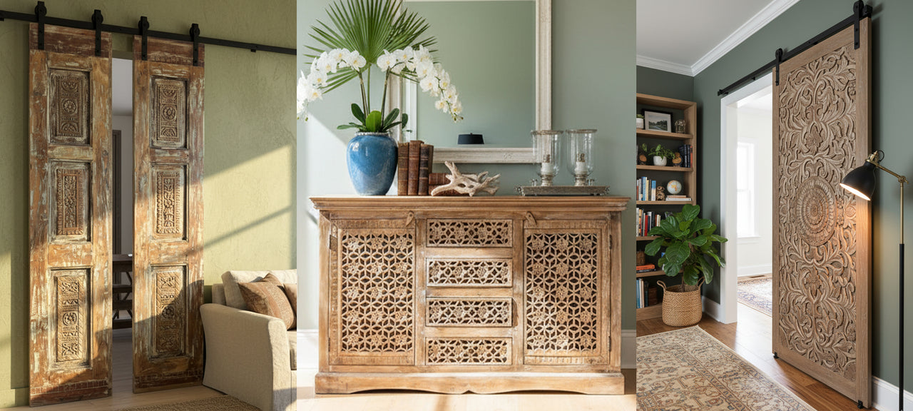 At Mogul Interior, we are honored to share the artistic treasures of India with you. While the company was formally established in 2010, its inspiration began long before. A career shift due to a life threating car accident led to a journey of discovery, where the grounding qualities of natural carved woods and the artistry of Indian architecture became a source of creativity and purpose. Drawing on design influences from Spanish, British, and French styles, Era started curating vintage doors and designing carved doors that celebrate holistic wellness and refined craftsmanship.