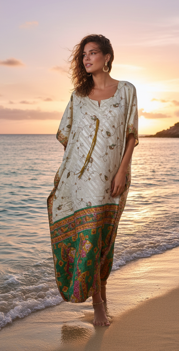 Come explore handmade bohemian clothing made from upcycled silk, natural cotton & rayon. Going for a beach vacation or planning a holiday get together? Our collection of kaftans and resort wear dresses create a boho-inspired vibe. Browse our unique collection, which includes recycled silk dresses, tunics, kaftans, skirts, maxi dresses, and harem pants. Each piece effortlessly combines style with mindfulness, allowing you to embrace chic fashion while contributing to eco-friendly practices.
