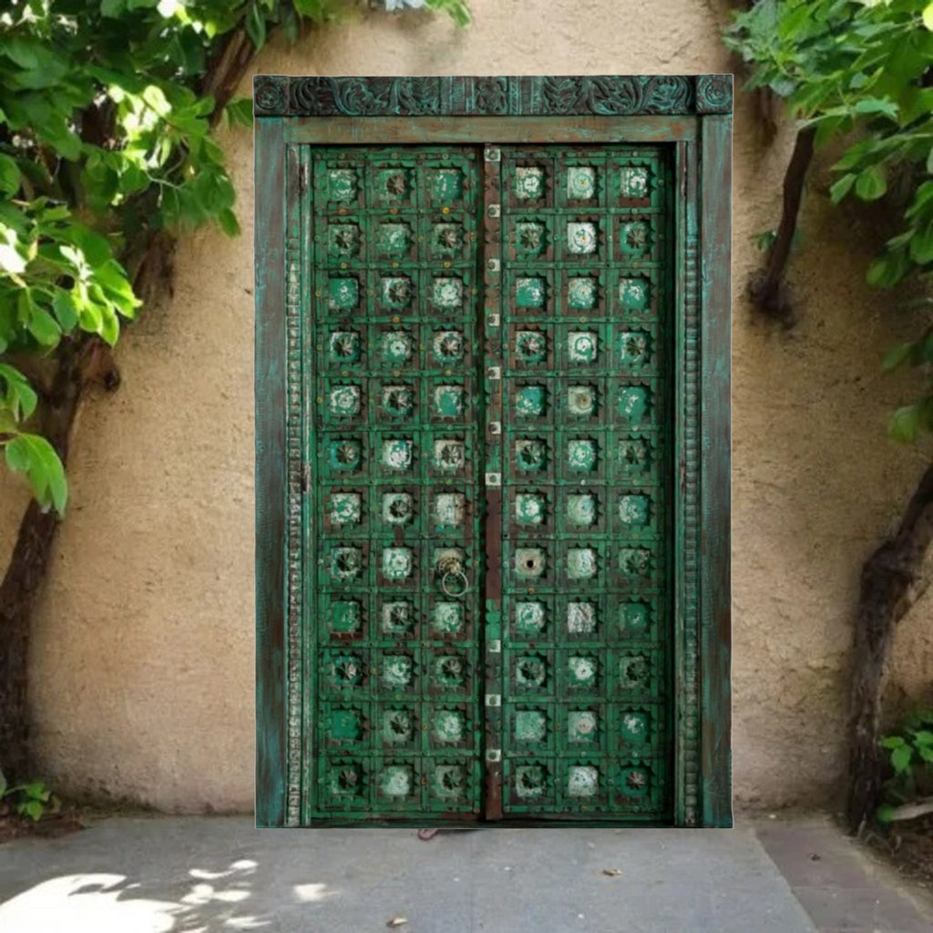 Crafted from teak wood and adorned with iron nails, these antique doors attract harmful ions, grounding them through the wood to the earth. This exceptional feature, combined with their intricate carvings, makes these rustic treasures both practical and visually striking. Explore curated antiques and vintage furniture pieces at Mogul Interior to elevate your home with rustic elegance.