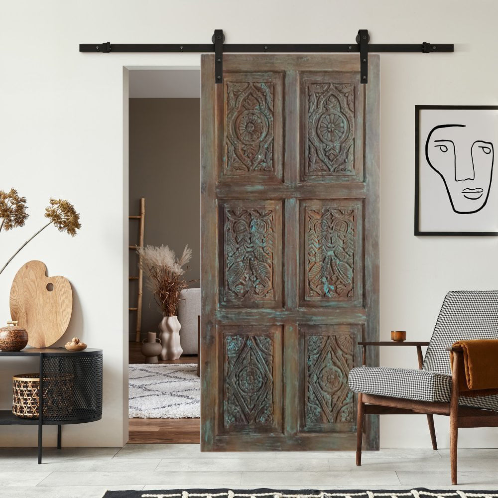 Mogul Interior's antique-inspired hand-carved doors, adorned with intricate nature motifs, bring old-world architectural charm and uplifting energy into your home.
