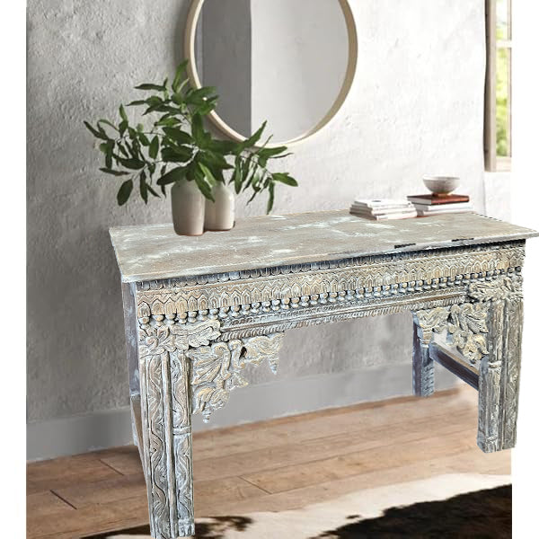 Antique Indian furniture, such as traditional hope chests once used to store textiles or grains, reflects a unique fusion of traditional craftsmanship and colonial architectural influence. Takht coffee tables made from reclaimed vintage doors and sideboard dressers in distressed wood, embellished with old-world carvings, bring rustic charm and uplifting energy into your home.