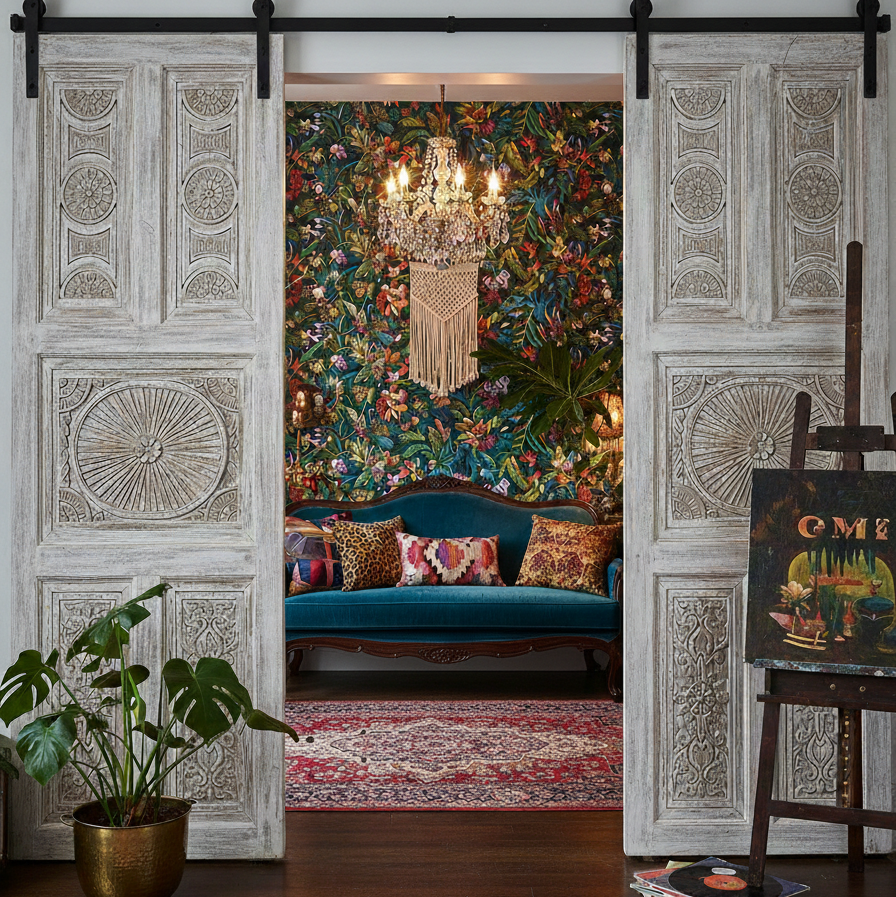 Invite the calming spirit of nature indoors with mindful design that celebrates organic textures and timeless craftsmanship. Vintage wood furnishings ground the space with earthy warmth, while intricately carved barn doors create a graceful flow between rooms, echoing natural patterns and quiet artistry. Soft sunlight filtering across reclaimed surfaces highlights their storied patinas and soulful character. Mogul Interior antique furniture adds an old-world elegance that feels both nurturing and refined, transforming everyday spaces into peaceful retreats. Layered with neutral tones, handwoven textiles, and gentle greenery, the room becomes a sanctuary—balanced, serene, and deeply connected to nature’s restorative beauty.