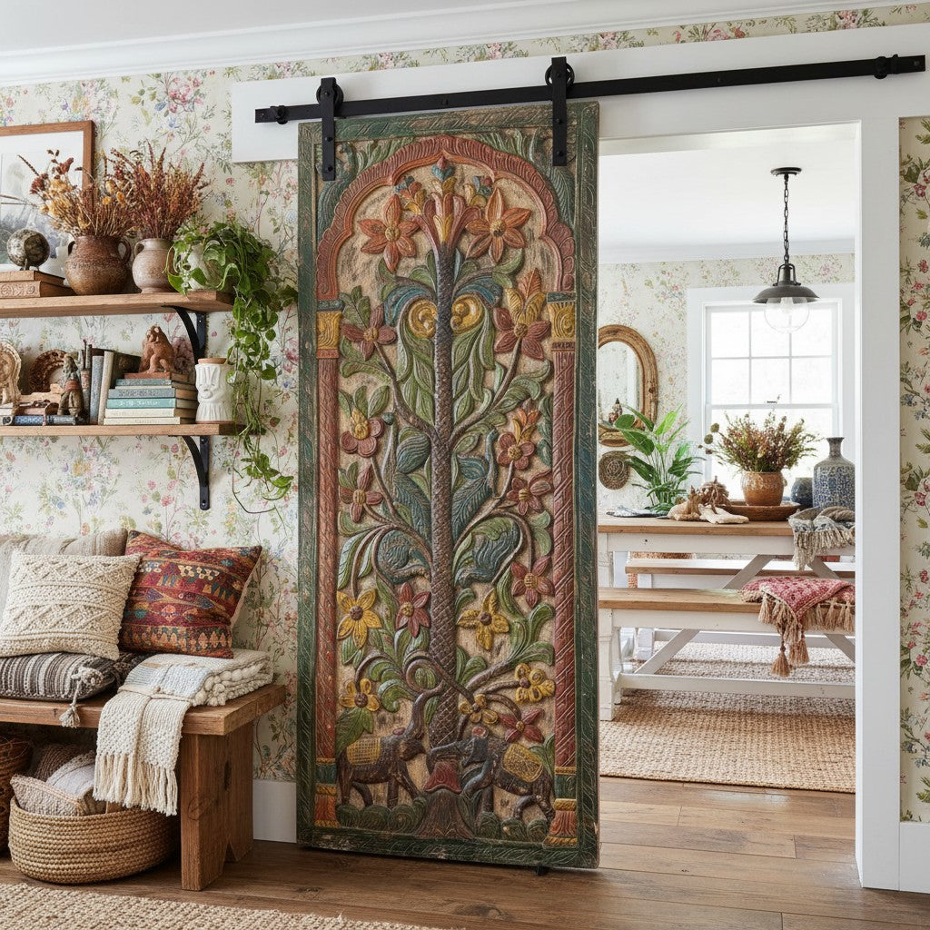 When repurposed as sliding partitions, dramatic statement walls, or functioning entries, these doors serve both structural and emotional roles. Their aged patinas—soft teal, sun-warmed ochre, or timeworn rose—lend instant authenticity and soul. Intricate carvings invite lingering glances and the instinctive desire to touch, creating an intimate dialogue between space and inhabitant. For architectural designers, these carved door panels become spatial anchors, grounding contemporary interiors while quietly stitching the present to a richly storied past—where memory, craftsmanship, and modern living coexist in thoughtful harmony.