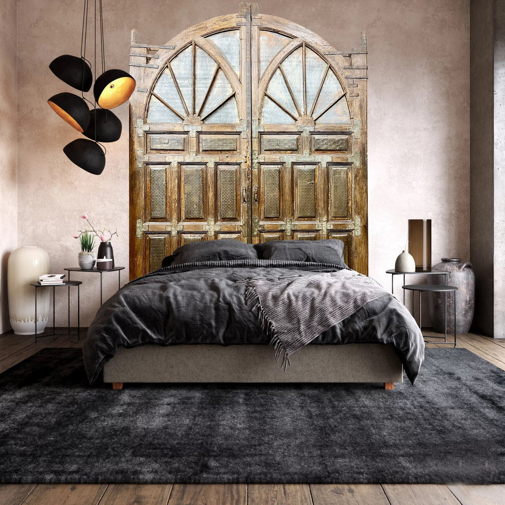 Add flexibility and comfort to your bedroom by pairing an antique door headboard with a thoughtfully curated mix of colorful tree of life wall panels and brass studded furniture. Sculptural stools, soft ottomans, and airy side chairs bring ease and movement, creating a space that feels relaxed yet intentional. Their subtle silhouettes balance the rich, architectural presence of the old door headboards, allowing the room to breathe. Effortlessly rearranged, these carved wood furniture pieces invite creativity—shifting with your mood, daily rituals, or evolving needs. The result is a bedroom that feels dynamic and personal, where old-world character meets modern livability, and comfort flows naturally through a space designed to adapt as beautifully as it inspires.