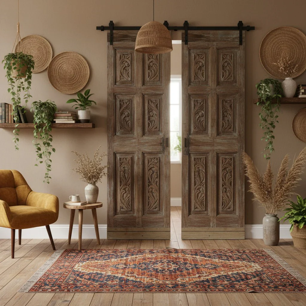 A home’s door speaks before you ever say a word—and nothing captures that spirit better than a vintage carved door. Each hand-hewn piece in our collection carries stories of heritage, artistry, and old-world craftsmanship. Imagine stepping into your living room through an antique carved door mounted on sliding barn hardware—rugged yet refined, instantly setting the tone for warm ranch hospitality. Or picture sun-bleached antique panels displayed as wall art, their weathered grain and intricate carvings adding depth, character, and a frontier soul to your space. These vintage accents transform a ranch-inspired haven rich with history and heart.