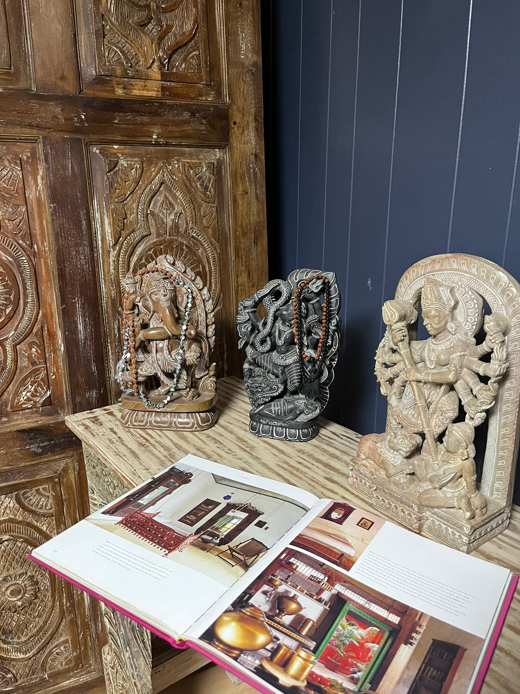 Parvati, Durga, Lakshmi, Saraswati & Kali are all forms of Shakti. Parvati is the wife of Lord Shiva and the mother of Ganesha and Kartikeya. She is the goddess of love, fertility, and devotion. Parvati is a gentle and nurturing figure, representing the ideal wife and mother. Durga is the personification of divine feminine power and energy. She is considered the source of all cosmic power and the dynamic force behind the creation, preservation, and destruction of the universe. Durga is a warrior goddess who represents the combined energies of all the gods. She is known for her strength, courage, and protection of the righteous. Durga is often shown riding a lion or tiger, armed with various weapons given to her by different gods, symbolizing her power to overcome evil and restore dharma (cosmic order).